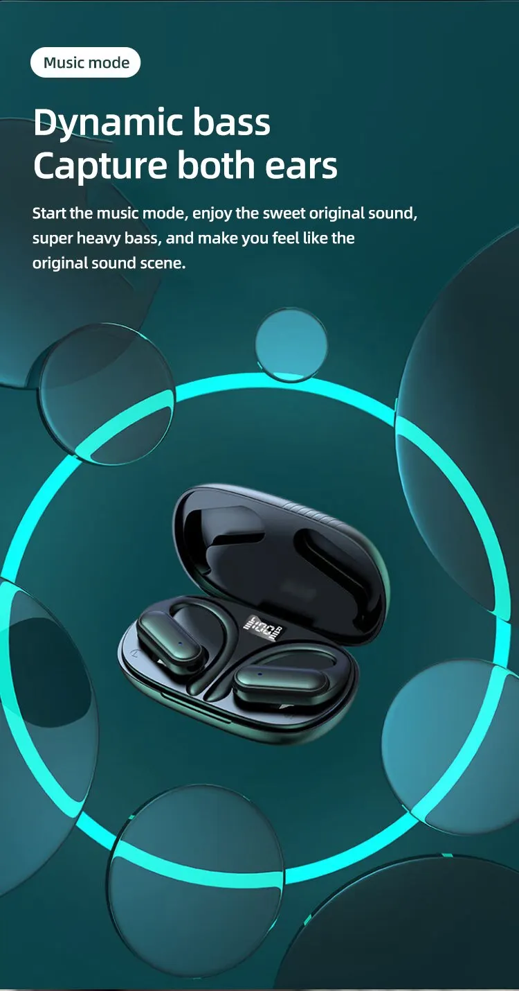 MZYJBL Bluetooth5.3 Headphones Bluetooth Earphones Wireless Earbuds Long Time Playtime Charging Case Digital Display Sports Ear buds with Earhook Premium Deep Bass IPX5 Waterproof Over-Ear Earphones for TV Phone Laptop Black