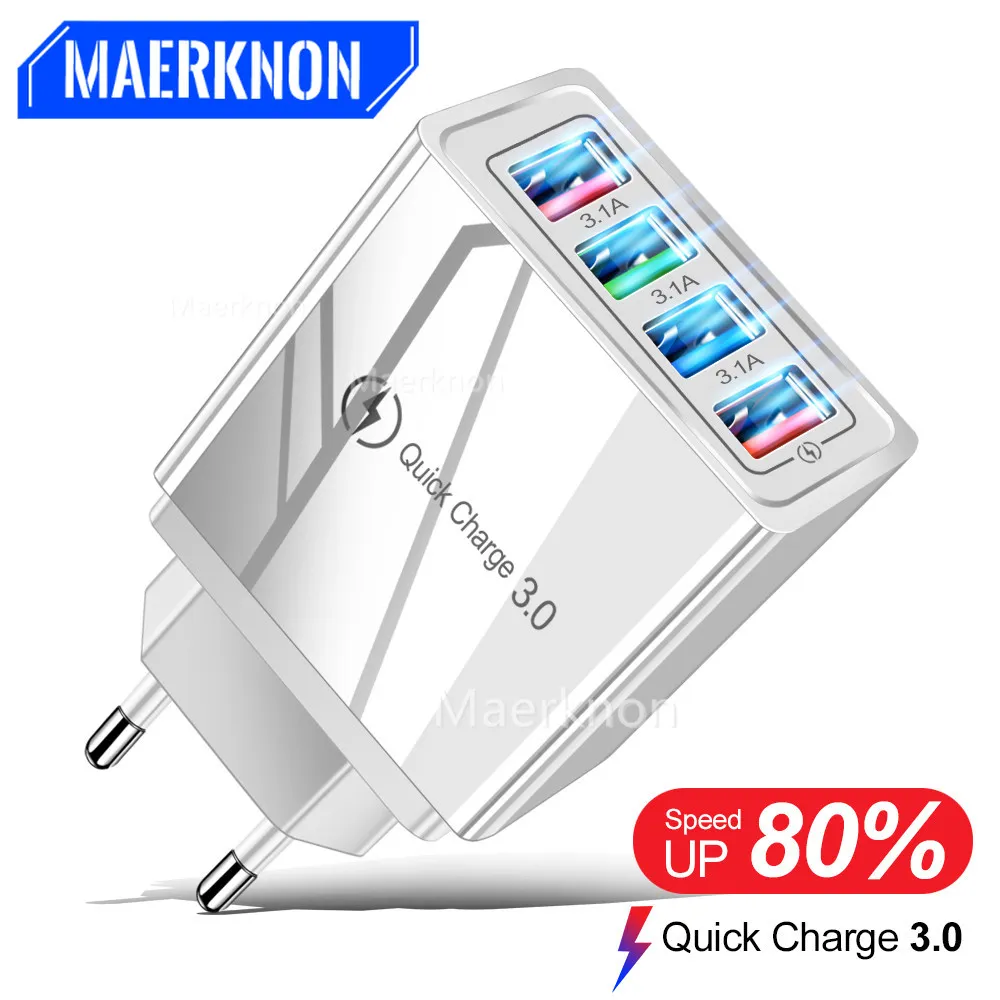 USB Charger Quick Charge 3.0 4 ports Phone Adapter For Huawei iPhone 12 xiaomi Tablet Portable Wall Mobile Charger Fast Charger